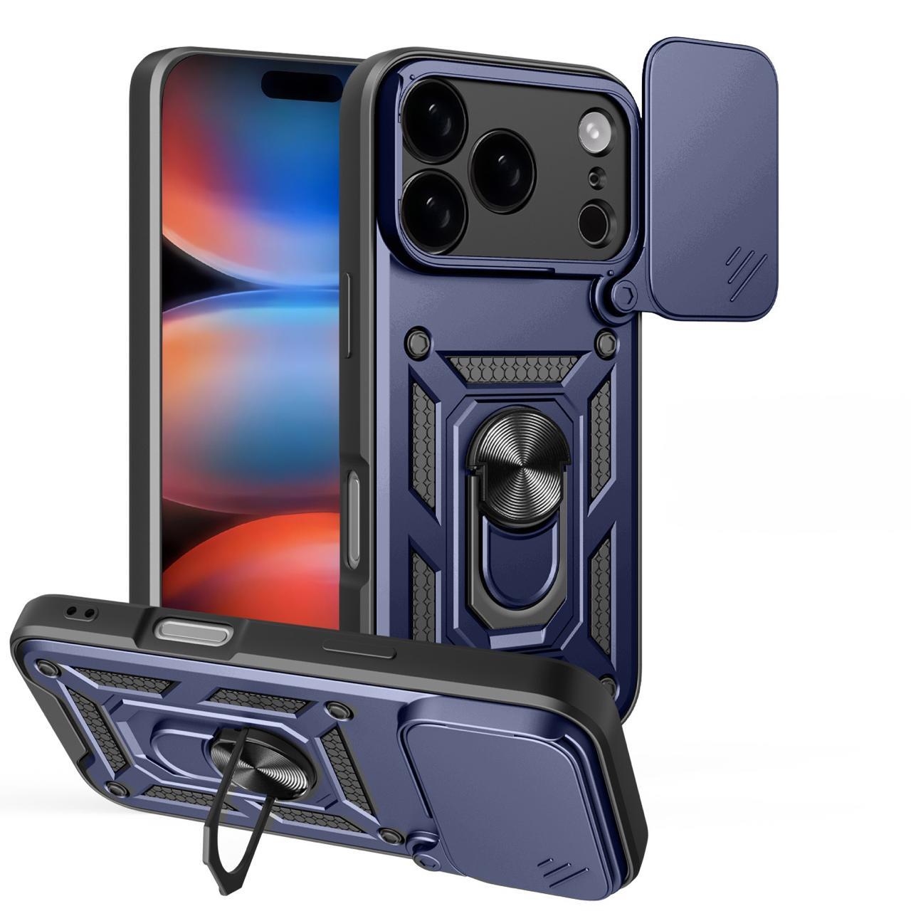 iPhone 17 Pro Stand Özellikli Sürgülü Darbelere Dayanıklı Slide Silikon Kılıf (10001)
